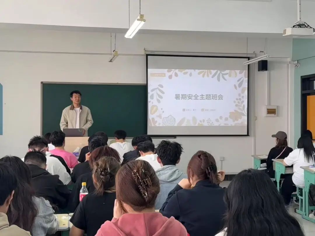 班会伊始,辅导员翟宁首先强调了假期安全的重要性,指出安全是享受假期的前提,也是每个人必须时刻牢记的责任。随后,他从多个方面进行了详细讲解,包括交通安全、防溺水安全、网络安全、居家安全以及旅行安全等,提醒同学们在假期中要特别注意这些方面的安全问题。
