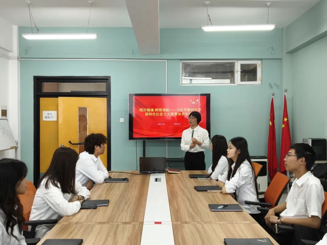 张磊书记首先围绕习近平新时代中国特色社会主义思想的形成背景展开讲解。她指出,党的十八大以来,我国经济、科技、国防实力稳步提升,综合国力与国际地位显著提高,中华民族伟大复兴前景愈发明朗。随后,张磊书记深入解读思想的核心要义,她强调,“八个明确”与“十四个坚持”是理解这一思想的关键抓手,二者共同构成了思想体系的核心框架,既提供理论指引又明确实践路径,要求学员们将这些核心内容学深悟透,融入思想与行动。最后,张磊书记对入党积极分子提出责任与担当要求:一要严格自我要求,学好专业知识,发挥榜样作用;二要以服务公司、服务同学为目标,拒绝形式主义;三要注重细节、定期反思不足,树立良好标杆;四要坚定理想信念,面对责任不推诿,保持务实作风。